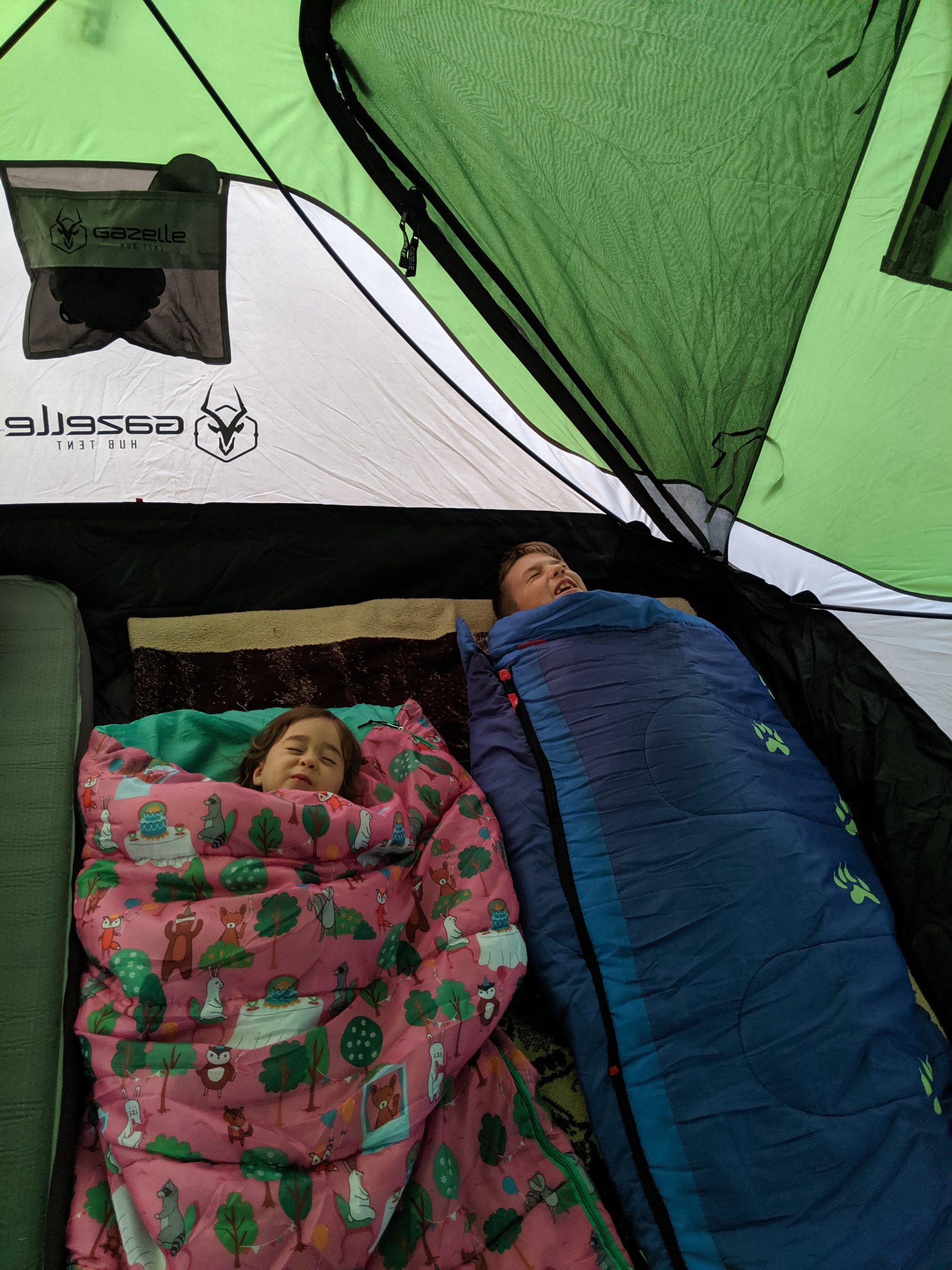 As far as space goes, the T4 by Gazelle is enough room for two adults and two small kids. Our 70lb. German Shepard dog fits inside with us but then it gets a little cramped. With my kids rapidly getting bigger we might have to find another sleep solution for the dog. Maybe I’ll set her up in the bed of my truck next time. Save that thought for another article. The wife and I sleep on my much-loved Ryno Tuff Sleeping Pads and the kids are still comfy on the floor.